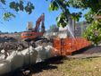 I lavori di demolizione in corso nella mattinata di oggi, sabato 28 giugno, all'ex Aermacchi: abbattuta l'ex palazzina comunale, spiccano in lontananza la torre e l'hangar principale che verrà recuperato e ospiterà piscina olimpica e spazi sportivi
