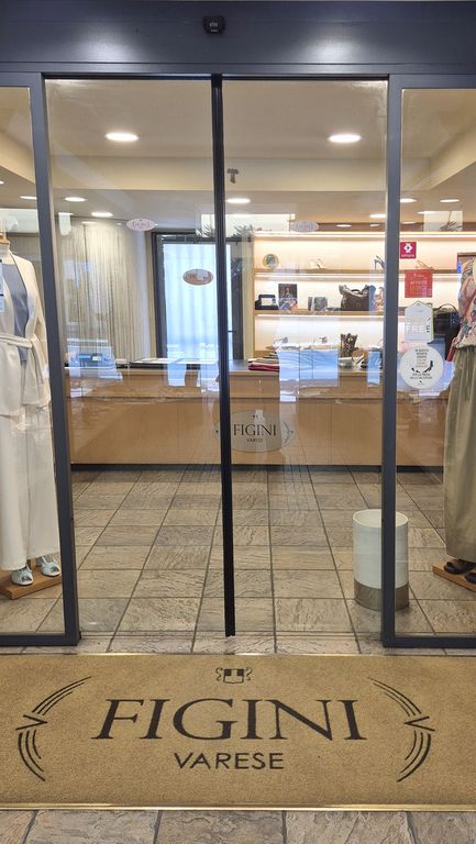 Il manifesto spiega ciò che in realtà il cliente trova da Figini, “nessun compromesso sulle materie prime, la qualità delle aziende che le producono e come, fatte di persone e di scelte”, attenzione su ogni prodotto, individuato tra i migliori artigiani italiani, e un lavoro accurato su materiali, forme e colori. Il marchio Figini conta ancora il grande negozio di piazza XX Settembre a Varese, e quello di via Spadari a Milano, aperto nel 1959, un anno dopo la boutique di piazza San Babila 2, poi chiusa. Un’altra vecchia fotografia mostra la signora Angela allora commessa nel negozio di via Garibaldi, aperto nel 1928, di un ordine impeccabile, assieme alle colleghe e con alle spalle il padre Renato. Carlo Figini e i suoi figli, nei primi anni di attività, salivano ogni domenica il Viale delle Cappelle del Sacro Monte per vendere ai pellegrini che scendevano a piedi comode ciabatte per riposare le estremità.