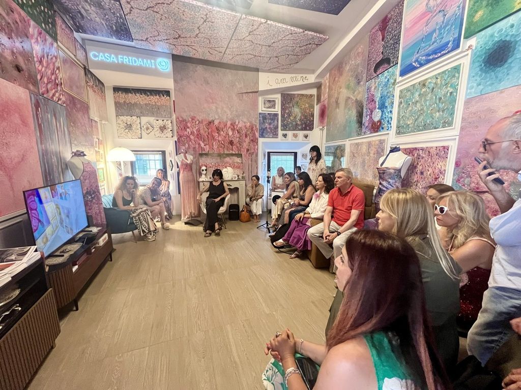 La curatrice Maria Di Pasquale ha guidato attraverso le tre fasi di Fridami, ma poi a ciascuno è stato affidato il compito di percepire i valori, la positività, la capacità di dire un no fermo e gentile alla violenza attraverso l'arte, una capacità che viene offerta a tutti aprendo queste porte.