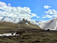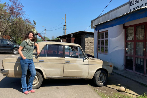 Con una marshrutka, minivan collettivo che parte solo quando è pieno. Inglese inutile, alfabeto georgiano indecifrabile, io zero russo: mi sono ritrovata in una piazza di furgoncini a gesticolare. Alla fine, grazie alla gentilezza dei driver, sono salita su quello giusto.Tra curve e strapiombi si arriva al villaggio di Stepantsminda: poche case, pastori, pecore e, in alto, il piccolo monastero con il Monte Kazbegi sullo sfondo, neve compresa nonostante fosse aprile. Un posto che toglie il fiato: d’inverno i monaci restano tagliati fuori dal mondo.