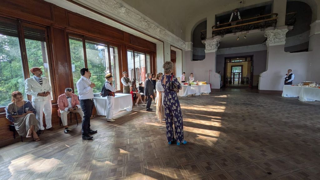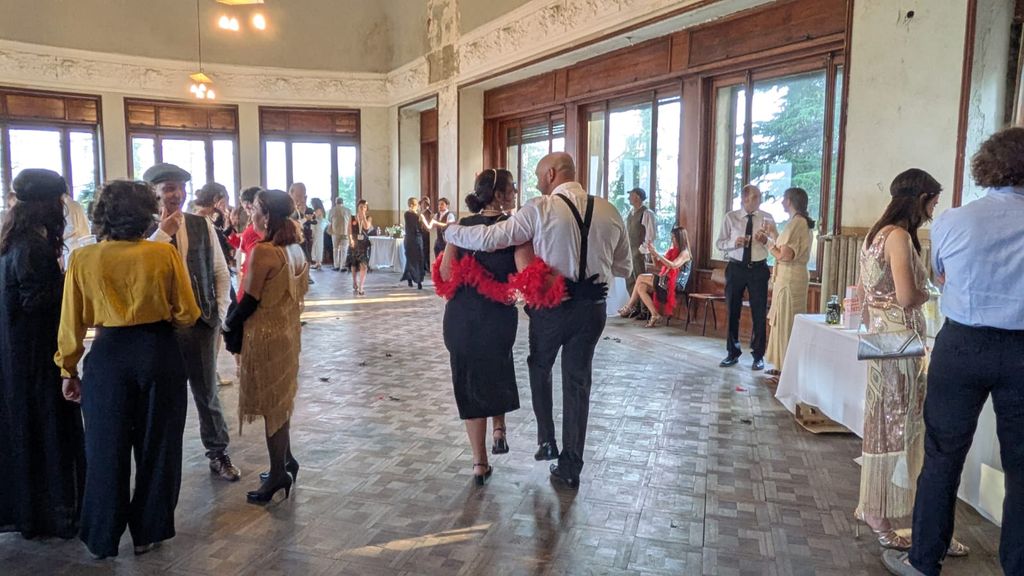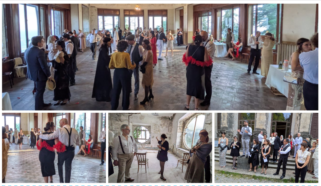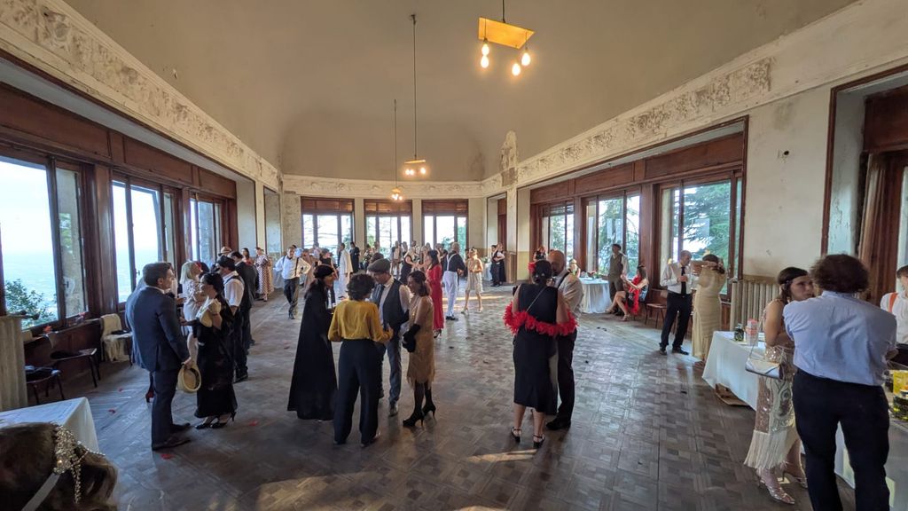 Dalla reception, centro nevralgico di ogni hotel, gli ospiti hanno raggiunto l'ultima tappa del tour, il punto di ritrovo per eccellenza: il salone delle feste, con i suoi lampadari in ferro battuto e le finestre che restituiscono l’incanto di una vista che, oggi come un secolo fa, affascina chiunque. Ieri sera, i circa 60 ospiti non hanno fatto solo da spettatori, ma sono stati veri e propri protagonisti di un perfetto ricevimento elegante e raffinato. Con un'orchestra che ha suonato le note di una volta e un servizio impeccabile offerto dal Caffè al Borducan, gli ospiti, nei loro abiti tra paillettes, frange e papillon, sono stati trasportati indietro nel tempo e hanno provato, anche se solo per qualche ora, cosa significasse essere ospiti del Grand Hotel Campo dei Fiori.