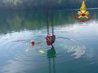 L'anziano ha perso il controllo del mezzo ed è finito in acqua. Provvidenziale l'intervento dell'elicottero da Como