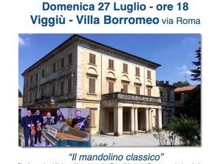 Domenica 27 Luglio alle ore 18 a nel comune di Viggiù a Villa Borromeo, in via Roma, si terrà il concerto "Il mandolino classico" con L’Ensemble Barocco “Benedetto Marcello” composta da Gianfranco Lupidii e Luca Matani ai violini, Ettore Maria del Romano al clavicembalo e il solista Francesco Mammola al mandolino.