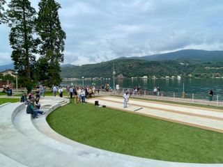 Al taglio del nastro presente Davide Sandrini, assessore ai Lavori Pubblici, ed Emanuele Monti, consigliere regionale. Regione Lombardia ha infatti finanziato per la metà dei 140.000 euro necessario all’installazione del molo presente sul lago fuori dall’area del parco giochi, che consente alle barche di attraccare.