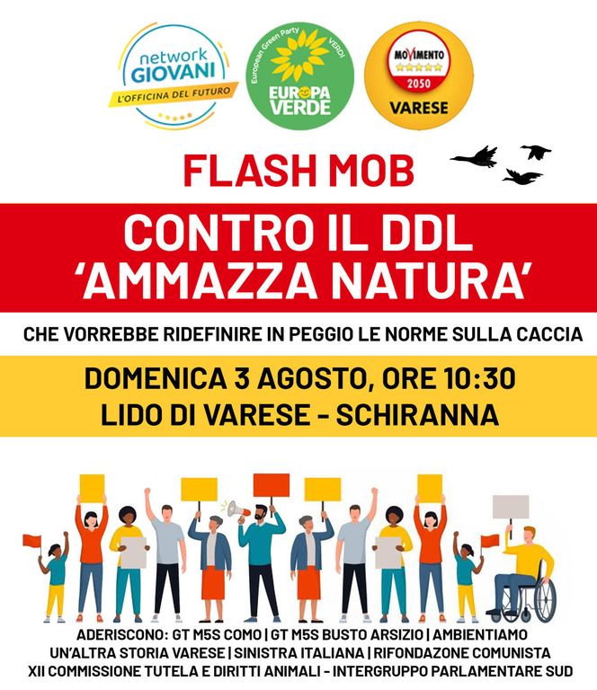 A fronte di quanto sopra, non possiamo che dichiararci assolutamente contrari alle modifiche proposte al testo sulla caccia, invitando chiunque condivida il nostro pensiero a unirsi al flash mob che si terrà presso il Lido di Varese - Schiranna il giorno Domenica 3 agosto 2025 dalle ore 10:30 alle 11:30 per dare voce a chi non ha voce!