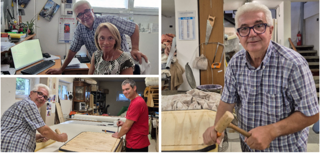 «Allora sistemavo 7-8 materassi al giorno, oggi forse 6 all’anno, poi cuscini, poltrone, divani e tende da interni. Più avanti, con la concessionaria Arquati, è aumentata la richiesta di tende da esterno e piccole veneziane. Quando incominciai, si cardava la lana con la macchina a mano, poi arrivò quella elettrica. Quando ero apprendista facevo le poltroncine che De Bortoli regalava a chi acquistava la mobilia per la camera da letto. Oggi la richiesta è soprattutto per le tende da sole e il rifacimento di poltrone e divani del salotto buono».