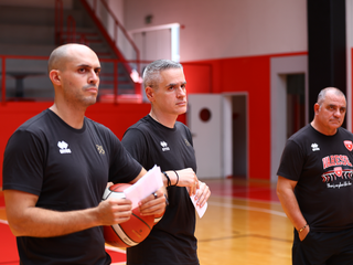La sessione odierna è durata circa due ore ed è consistita in esercizi individuali palla in mano e divisi per ruoli (le cosiddette “vitamins”), in una parte atletica, in una partita e in qualche tre contro tre. Subito altissimi i ritmi così come l'attenzione richiesta dall'allenatore greco all'intero gruppo: non è sembrato il classico "primo allenamento". Difficile dare giudizi sui singoli, per ora basta qualche impressione, come l'ottima dimestichezza nei giochi a due ricavata da Moody, l'atletismo di Renfro e la classe dimostrata in diversi aspetti del gioco dal giovane Lautaro Basualdo, capace di rubare gli occhi a diversi presenti.