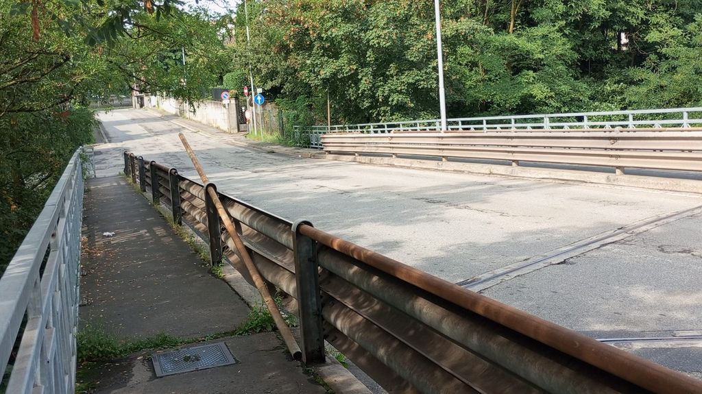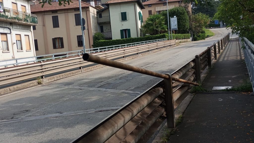 In via del Lazzaretto, nel quartiere di Belforte a Varese, un corrimano arrugginito sporge dal guardrail, risultando pericoloso.