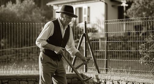 Papà raccontava che il Serafino, ormai anziano, ogni tanto andava ancora ad accomodare i giardini dei signori, era bravissimo nella potatura degli alberi da frutto tanto da essere richiesto anche a Varese, dove arrivava con i suoi attrezzi, la roncola e uno strano paio di forbici, con il metallo dell’impugnatura ricoperto da un rivestimento d’osso ingiallito dal tempo. Una primavera venne anche da noi e assistemmo alla falciatura del prato con la vecchia falce fienaia del nonno, che il Fino aveva affilato con la cote custodita in un corno di bue.