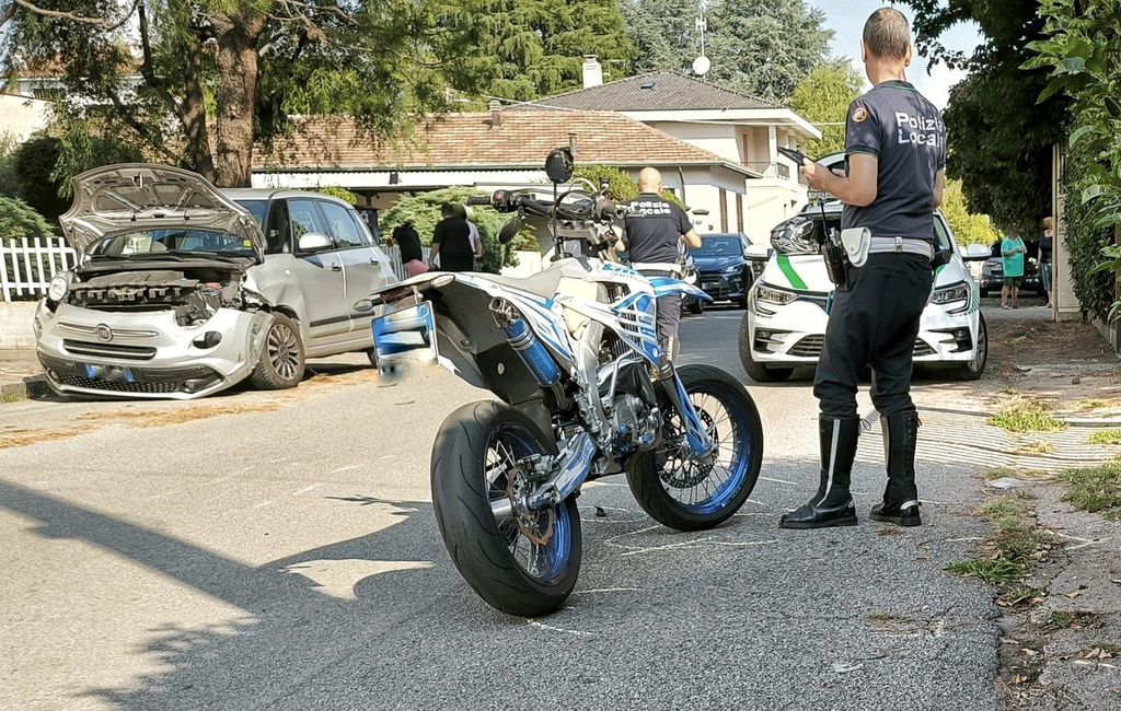 Scontro auto-moto in via Ponzella a Busto, spavento per due ragazzi di 16 e 18 anni