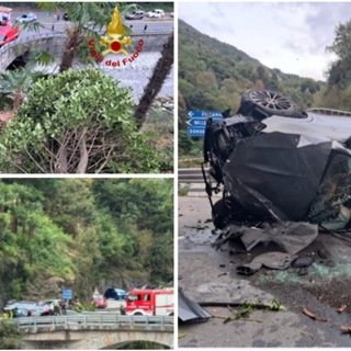 FOTO. Auto precipita per 20 metri dal cortile di una villa sulla strada: tragedia sfiorata e donna ferita