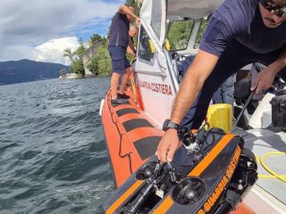 Sono riprese oggi le operazioni con due Rov dei vigili del fuoco dopo l'inabissamento di un giovane di 21 anni lo scorso 22 agosto nelle acque del Verbano a Castelveccana. Nella piazza della frazione allestito una Unità di Comando Locale