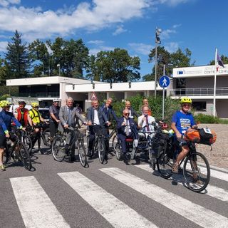 VIDEO e FOTO. Parte dal Jrc di Ispra il sogno e il viaggio di Giovanni Bloisi: «Pedalo dal Mortirolo a Bruxelles per consegnare ai nostri giovani un'Europa unita e solidale»