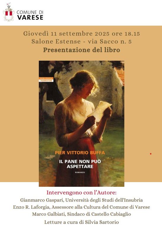 Giovedì 11 settembre 2025, alle 18.15 presso Salone Estense, si terrà la presentazione del libro di Pier Vittorio Buffa Il pane non può aspettare (Neri Pozza editore, 2025).