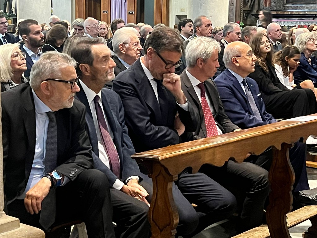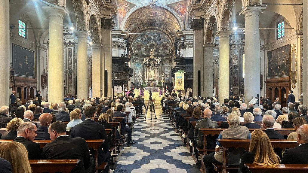 La folla ha seguito in silenzio, interrotto soltanto dal rintocco delle campane. Dentro la chiesa, gremita in ogni ordine di posti, autorità, imprenditori, sportivi e cittadini comuni si sono stretti attorno alla famiglia, con la moglie Lella e i figli in prima fila sulla sinistra mentre al primo banco a destra le istituzioni tra cui il ministro dell’Economia Giancarlo Giorgetti, il senatore a vita Mario Monti, il presidente di Regione Lombardia Attilio Fontana, il presidente della Provincia di Varese Marco Magrini e il Prefetto Salvatore Pasquariello.