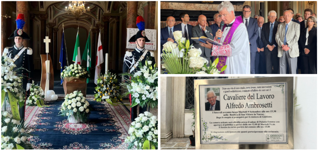 Sono stati in molti a visitare la camera ardente allestita nel Salone Estense del Comune, ad assistere alla benedizione del prevosto, monsignor Gabriele Gioia, e poi a partecipare al corteo con il feretro che ha raggiunto a basilica dove viene dato l'addio a una delle figure più illustri di sempre, non solo in campo economico, di Varese.