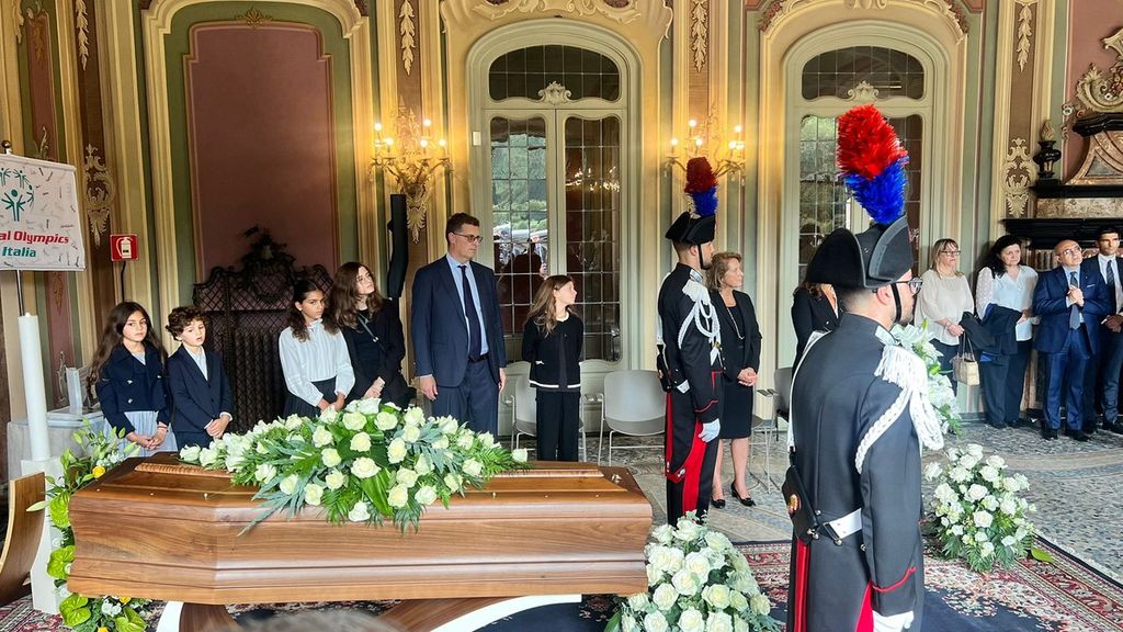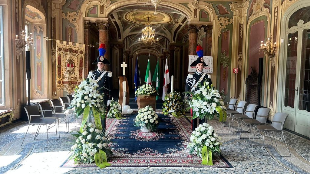 Il corteo con l'arrivo del feretro in piazza San Vittore, le parole del sindaco Galimberti e la benedizione nel Salone Estense