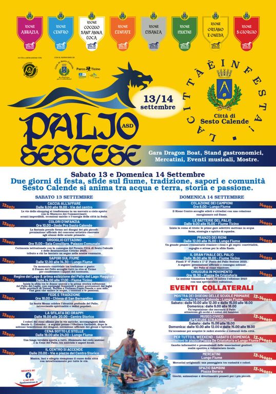 «Siamo riusciti a investire e aggiungere due nuovi Dragoni, ma anche pagaie nuove, boe e giubbotti - dice ancora Pintori - Saranno numerosi gli eventi collaterali con una serata di swing prevista sabato, ma anche concerti e djset. Saranno presenti, inoltre, i mercatini e le giostre per i più piccoli» conclude Andrea Scandola della Pro Sesto.