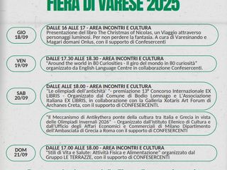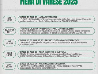 Nelle giornate del 12, 13 e 14 settembre tutto il giorno sarà inoltre possibile incontrare l’autore Samuele Corsalini presso lo stand Confesercenti, la riscoperta del territorio parte dal libro “Quel che non sai di Varese”, dedicata alla valorizzazione della storia e delle curiosità del territorio.
