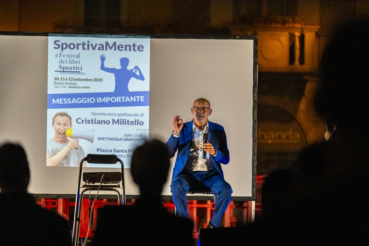 Il finale di SportivaMente brilla al cospetto di Santa Maria a Busto e lo fa unendo emozioni, anche commozione, e sorrisi come solo lo sport sa fare. Si è concluso con lo show di Cristiano Militello il nostro Festival dei Libri Sportivi, show preceduto dalla presentazione del libro di Nicola Calathopoulos "Gioco Sporco" con l'editore Enrico Anghilante e la redazione de il Bustese.it.