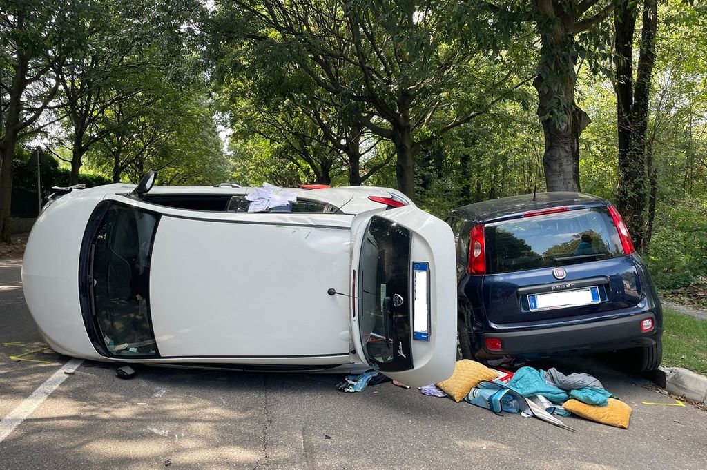 FOTO. Auto si ribalta sul viale: paura a Busto Arsizio, ferita una donna. «Abbiamo più volte segnalato la criticità»