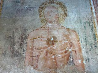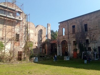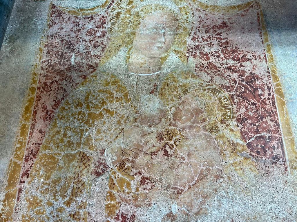 «Questo affresco era già stato individuato più di 10 anni fa - ha spiegato la restauratrice Rossella Bernasconi, che sta lavorando al recupero assieme a collega Piero Lotti - Sopra, fortunatamente, non c'erano strati di intonaco ma solo delle tinteggiature. A fine Quattrocento-inizio Cinquecento era stato realizzato questo dipinto da Galdino da Varese che raffigura la Madonna, San Rocco e San Sebastiano. Il nostro lavoro si è allargato sui margini per capire l'ambito dell'artista, che ha lavorato su una parete che aveva a vista ciottoli e mattoni, su cui ha messo l'intonaco e ha dipinto. Questo è, quindi, un edificio che ha moduli costruttivi medievali».