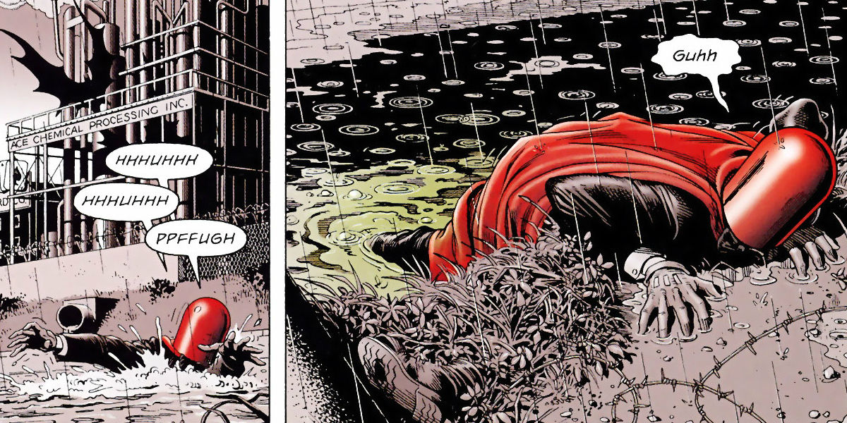 Per la cronaca: nel mondo di Batman esistono due Red Hood. Il primo lo incontriamo brevemente nel 1998 nella leggendaria storia di Alan Moore “The Killing Joke”. In un abbozzo di origini della nemesi del pipistrello, scopriamo che il Joker è stato un tempo un comico fallito. Per poter racimolare qualche soldo accetta di mascherarsi con un cappuccio rosso e di portare a termine un furto in una fabbrica di componenti chimici. Qui incontra Batman e… La storia è molto conosciuta, ma evito comunque un possibile spoiler.