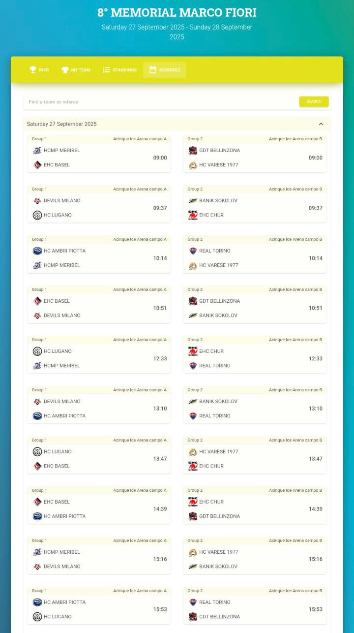 Qui sotto il programma con le partite del sabato e la seconda giornata di domenica: sabato il Varese giocherà alle 9 con il Bellinzona, alle 10.14 con il Real Torino, alle 13.47 con il Coira, alle 15.16 con il Sokolov. Alle 15.53 baby derby Ambrì-Lugano.