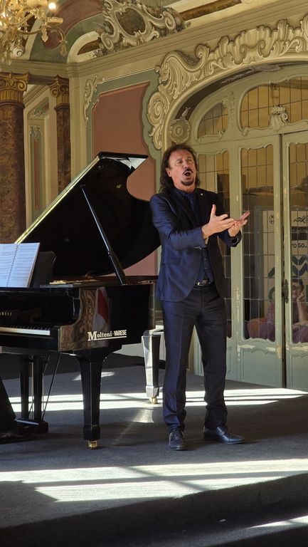 La premiazione si è tenuta nell'ambito di un concerto lirico, che ha visto esibirsi tre allievi del Maestro, con grandi classici come il mozartiano "Là ci darem la mano" e "La calunnia" dal Barbiere di Siviglia, fino a brani davvero rari, come "Di sposo, di padre" dall'opera Salvator Rosa del compositore brasiliano Gomes o "O ma lyre immortelle" dalla "Sapho" di Gounod.