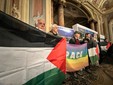 Non sono mancati momenti di tensione in sala. Alcuni attivisti, presenti tra il pubblico, hanno esposto bandiere palestinesi e arcobaleno, causando una breve interruzione della seduta. L’episodio si è chiuso rapidamente, ma ha evidenziato il clima di tensione che ha accompagnato l’inizio della serata.