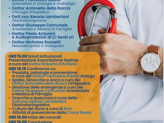 L’obiettivo sarà di coinvolgere i cittadini cassanesi e delle città limitrofe, soprattutto Adulti ed appartenenti alla 3^ età, in una prima attività di sensibilizzazione offrendo un servizio di consulti gratuiti attraverso uno staff di Medici composto da: Dottor Francesco Gaeta specialista in Urologia, Andrologo certificato e rappresentante della Società Italiana di Andrologia (SIA) per la Lombardia; Dottor Antonello della Rocca Ortopedico, Chirurgo dell’anca e del ginocchio Istituto Clinico Humanitas Rozzano; Dott.ssa Alessia Lambertoni Otorinolaringoiatra Ospedale di Circolo Asst Sette Laghi Varese; Dottor Giuseppe Comunale Anestesista e Medico di Famiglia; Dottor Paolo Antonini e Audioprotesisti dell’azienda Ci Senti srl; Dottor Nicholas Rossetti Massoterapista e Osteopata.