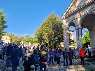 Il gruppo formato da medici, infermieri e altre figure professionali ha percorso la Via Sacra per giungere al Santuario di Santa Maria del Monte, dove ha assistito alla Messa celebrata da don Paolo Fontana.