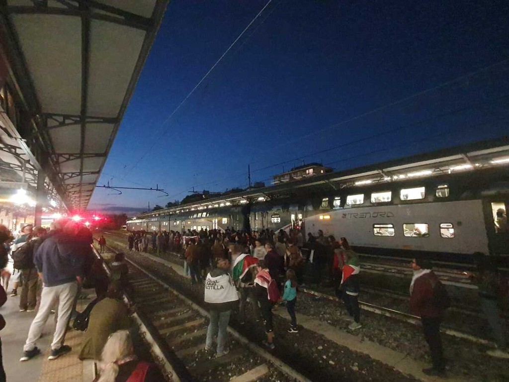 A Busto Arsizio il corteo dei manifestanti pro Pal, partito dalle 18.30 da piazza San Giovanni, ha raggiunto la stazione Fs di Busto Arsizio. Superando la resistenza delle forze dell'ordine, che inizialmente hanno cercato di bloccare l'accesso ai binari, un nutrito gruppo di manifestanti (erano circa 300) ha occupato i binari, mente altri sono rimasti sulla banchina.