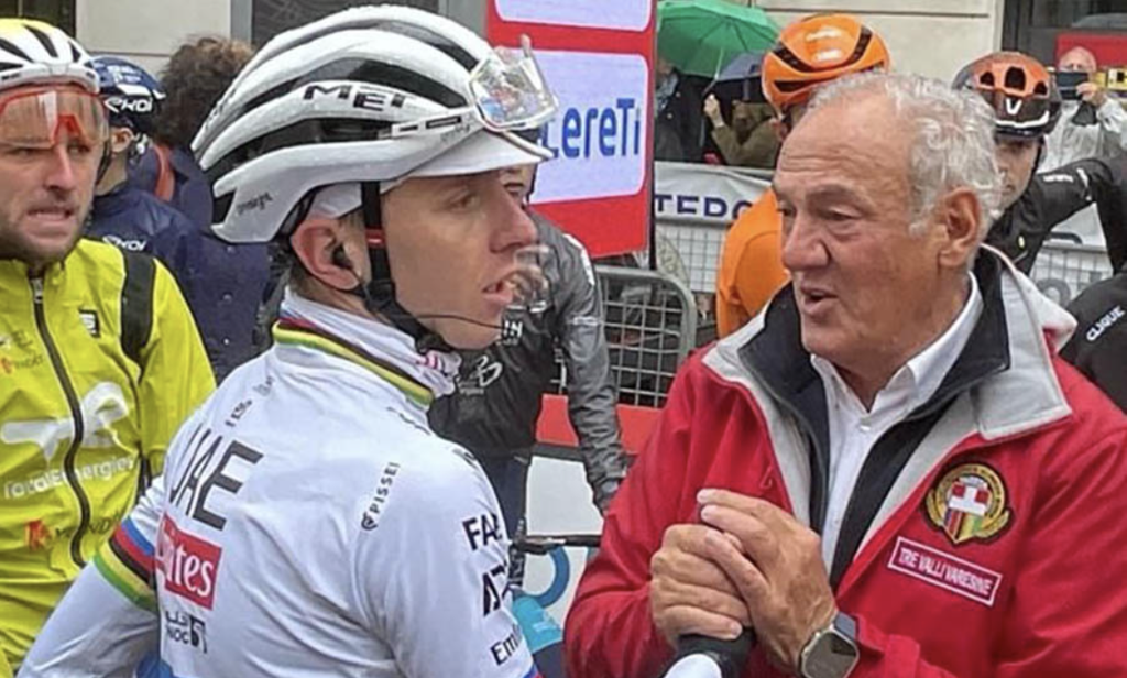 Queste le sue parole durante la trasmissione: “Tadej Pogacar sarà al via della Tre Valli Varesine e lì farà il suo debutto con la nuova maglia iridata. Aveva promesso l’anno scorso a Renzo Oldani che sarebbe tornato il prima possibile a Varese (dopo l’annullamento della gara nel 2024 per il maltempo, ndr) e in questi giorni siamo riusciti ad organizzare e a incastrare la sua partecipazione e quindi gli appassionati di ciclismo italiani lo potranno vedere in gara martedì prossimo alla Tre Valli Varesine e poi sabato a Il Lombardia”, ha confermato Giannetti.