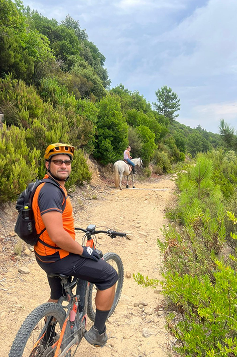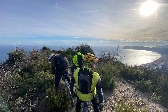 Flavio Di Malta, 40 anni, è nato a Sanremo. Cresciuto con il calcio, ha dovuto abbandonarlo a causa di un infortunio al ginocchio. È stata la bicicletta, lasciata a 14 anni, a riportarlo su una strada inattesa: quella del cicloturismo. Oggi è guida accreditata presso la Regione Liguria e l’Accademia Nazionale di Mountain Bike. Dal 2020 questa è la sua professione principale, dopo una fase iniziale da attività estiva e occasionale.