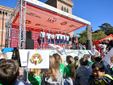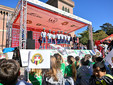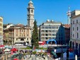 17.01 Premiazioni in piazza Monte Grappa: Tadej Pogacar sale sul gradino più alto del podio, in migliaia applaudono il re di Varese e del mondo