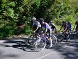14.08 Le prime foto dalla gara arrivano dalla salita dei Ronchi, dove un nutrito gruppo di sostenitori di Alessandro Covi si è ritrovato a tifare per il puma di Taino.