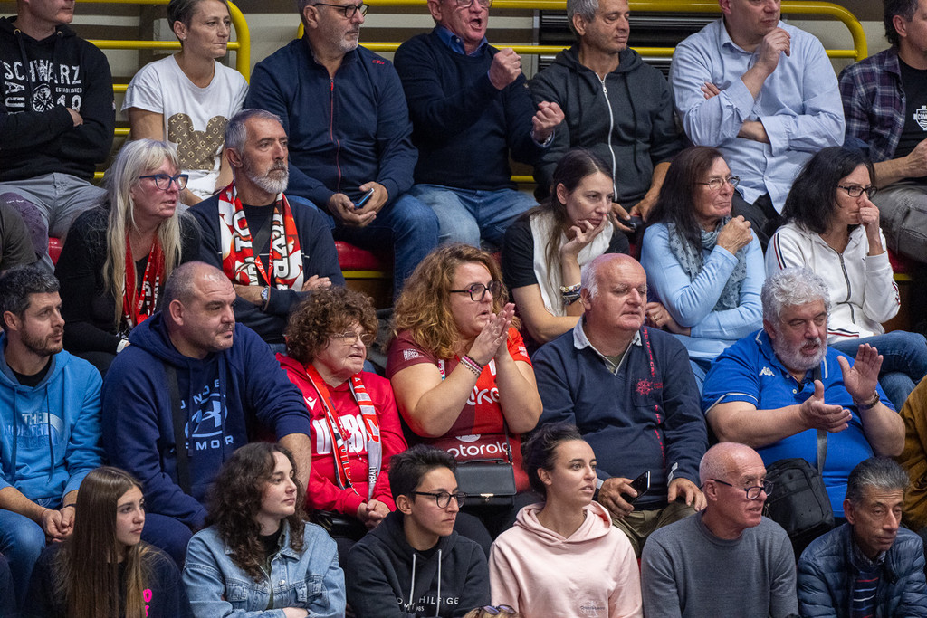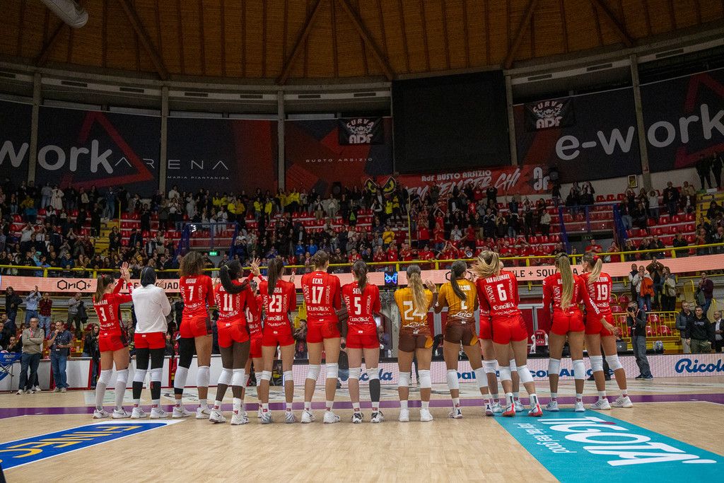 Le farfalle hanno sfoderato una prestazione coraggiosa, trascinate dal calore di una Arena gremita e rumorosa, per la prima volta tutta numerata e con i seggiolini biancorossi al primo anello, dove il tifo è stato un'onda costante. Emozionante anche il contorno della serata, con presenze d’eccezione in tribuna: al fianco di patron Giuseppe Pirola, il sindaco di Varese Davide Galimberti e l’assessore allo sport Stefano Malerba, immortalati a fine partita insieme ai politici bustocchi Luca Folegani e Manuela Maffioli (foto in apertura).