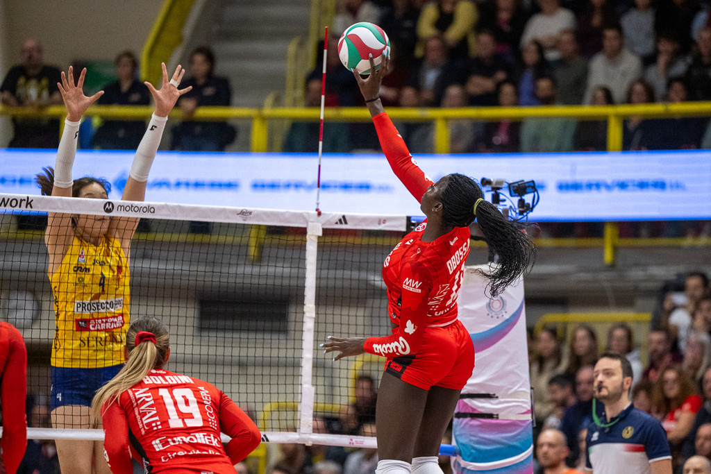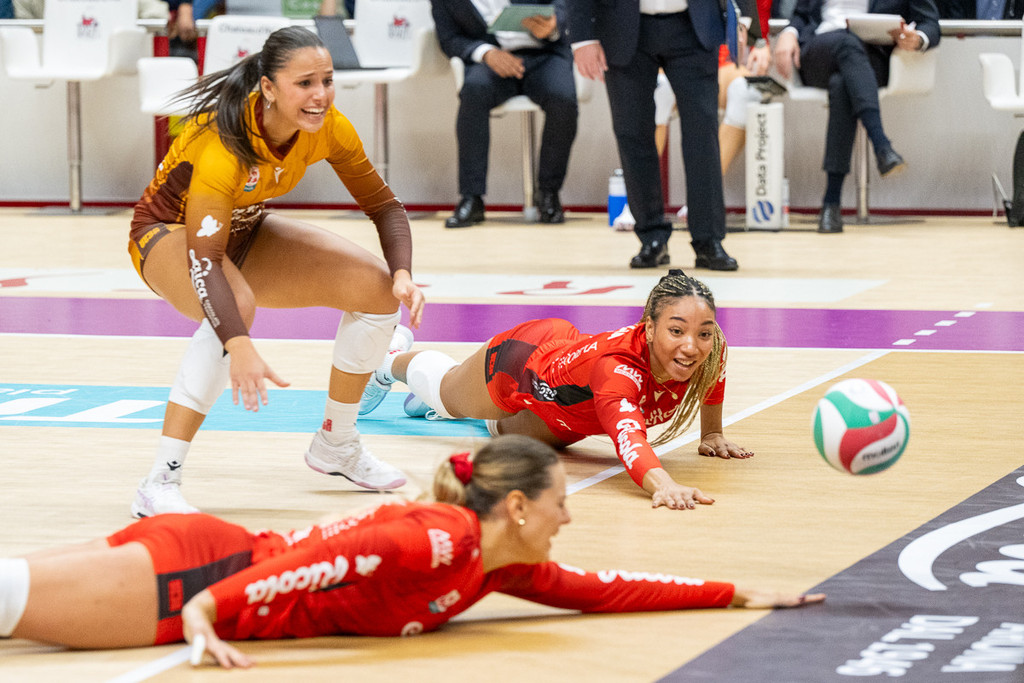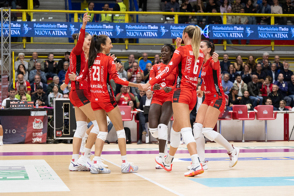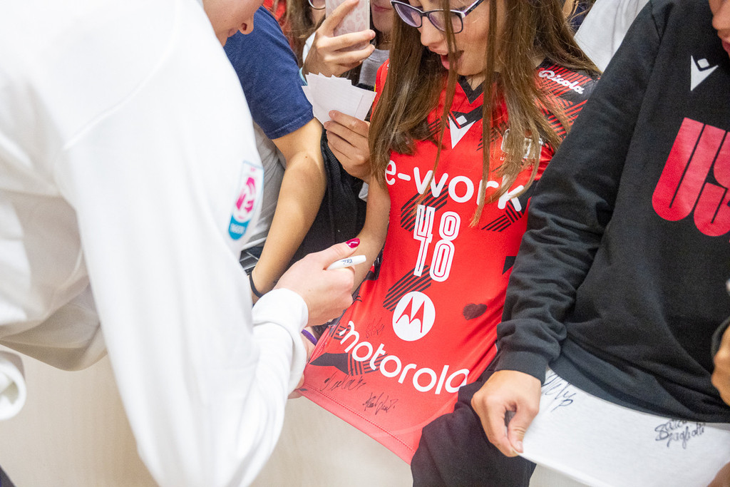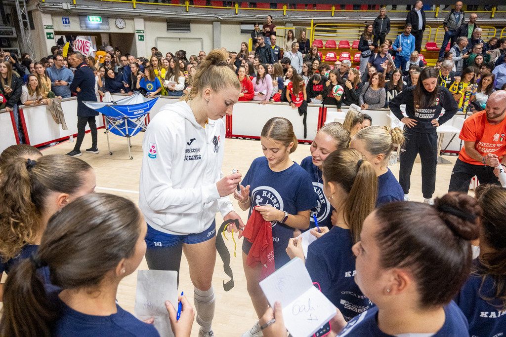 E dopo che l'ultimo pallone è caduto a terra, a bordo campo è partita un'altra festa, con decine di giovani tifose a caccia di selfie e autografi. Occhi brillanti e sorrisi per incontrare le campionesse di Conegliano e soprattutto le fresche iridate della nazionale di Velasco, le “ragazze terribili” Moki De Gennaro e Sara Fahr, accolte come vere star.