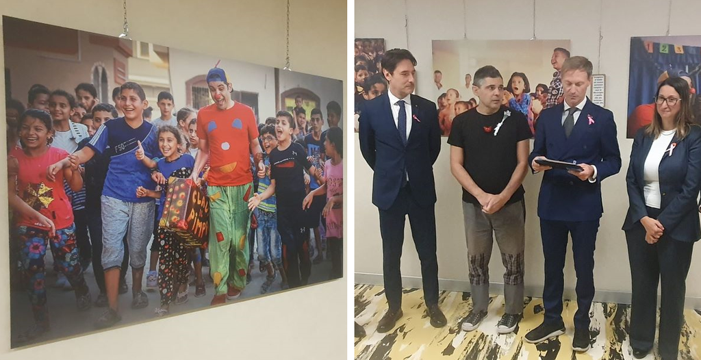 È stata inaugurata oggi la mostra fotografica “Scatti di meraviglia” curata proprio da Marco Rodari, clown di guerra impegnato a regalare sorrisi, spensieratezza e speranza ai più piccoli. Dall’Iraq alla Siria, dall’Ucraina alla striscia di Gaza.