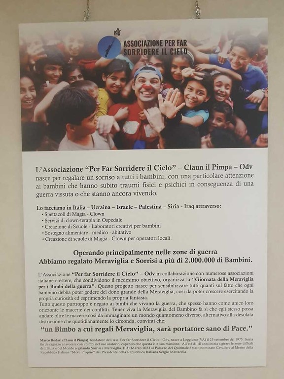 La mostra, allestita dal 1° al 17 ottobre nel foyer del palazzo sede del Consiglio regionale, restituisce la meraviglia che, grazie al clown umanitario originario di Leggiuno, può sbocciare anche negli scenari più terribili. L’iniziativa è promossa dal consigliere regionale Giuseppe Licata, che ha voluto riservare una cornice istituzionale al messaggio di pace e speranza di Rodari: «Un esempio civico che vale più di mille parole», ha rimarcato l’esponente di Forza Italia.