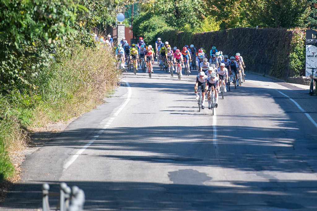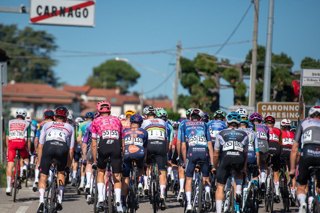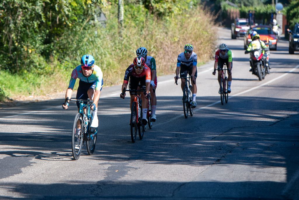13.46 Dopo circa 68 chilometri di gara il gruppo è già tirato dagli uomini dell'UAE Team Emirates XRG che inseguono i cinque uomini al comando: Andrew August, Kevin Colleoni, Lorenzo Milesi, Davide Ballerini, e Mattia Bais. Circa 3'20" il loro vantaggio.