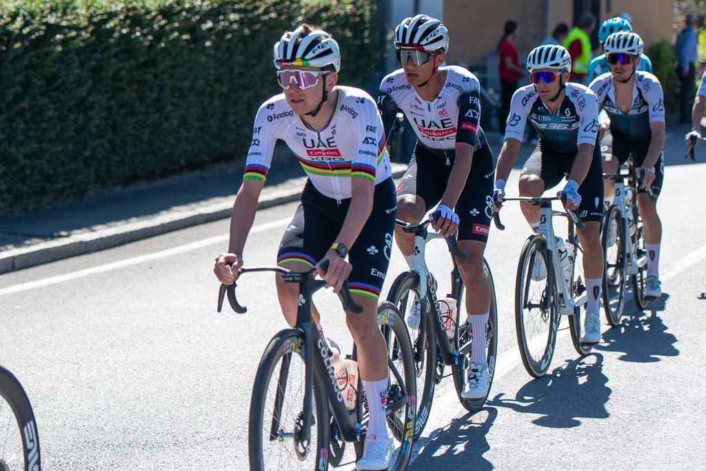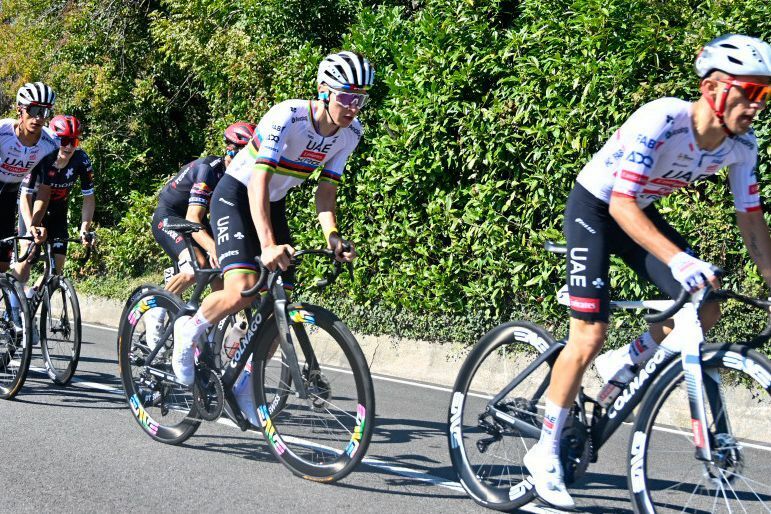 16.36 Non c'è accordo tra i fuggitivi: si prospetta l'ennesima vittoria di Tadej Pogacar. 8 chilometri all'arrivo.