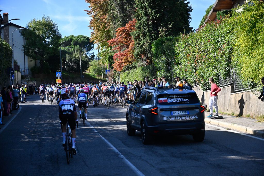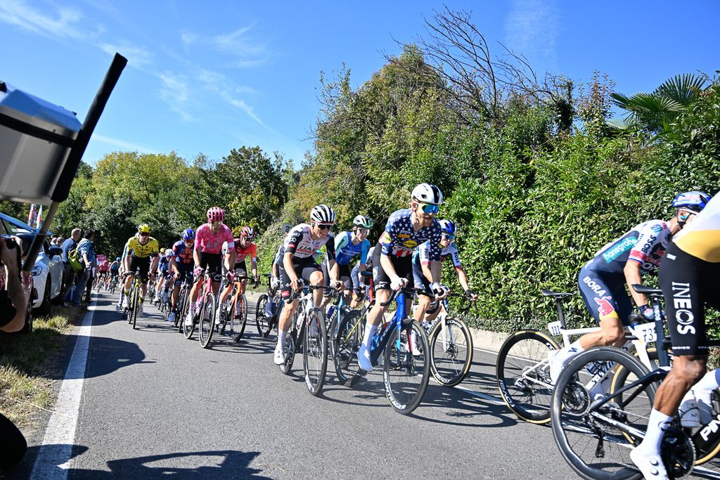 16.40 Pogacar inizia l'ultimo passaggio sulla salita dei Ronchi. Poco meno di 4 chilometri al traguardo.