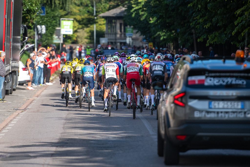 15.18 70 chilometri all'arrivo: in testa Egan Bernal ha raggiunto Lorenzo Milesi, unico reduce della fuga del mattino. Il gruppo insegue a 43 secondi. Tra poco salita dei Ronchi e poi via ai due giri lunghi