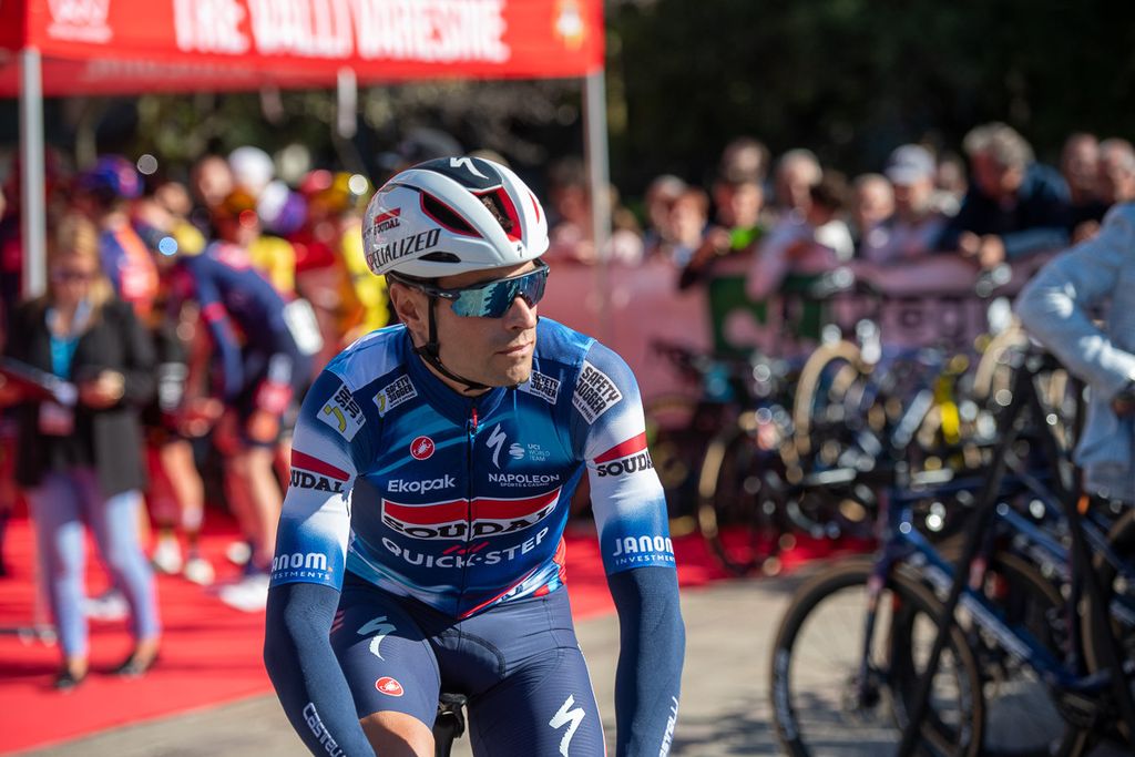 16.48 Il gruppo inseguitori, arrivato a 45 secondi, regolato da Withen Philipsen (Lidl-Trek). Terzo Julian Alaphilippe.