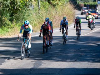 16.05 Simmons e Milesi raggiungono Bernal in testa alla gara: conduce un terzetto ora in cima alla salita dei Ronchi.