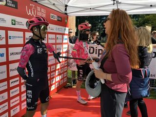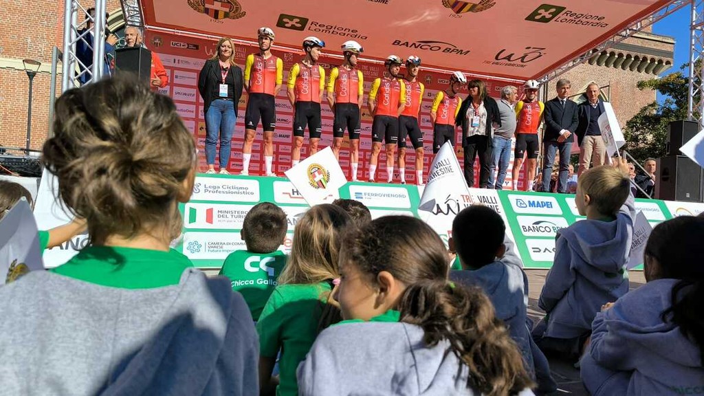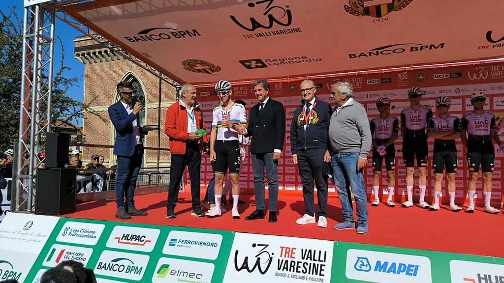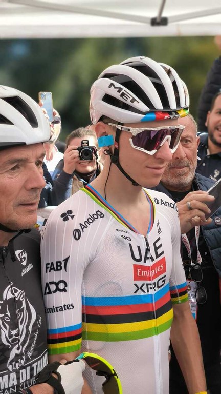 Grande attesa soprattutto per il bicampione del mondo Tadej Pogačar, che, da grande star, si è presentato per ultimo al foglio firme. La sua UAE Team Emirates è stata l'ultima a sfilare sul palco allestito nel parco del Museo del Tessile. L'istrionico campione sloveno, quattro volte vincitore del Tour de France, ha catalizzato l'attenzione dei tanti tifosi, piccoli e grandi, ma anche di media e autorità. In tanti hanno scattato un selfie con il ciclista, a partire dal vicesindaco Luca Folegani, appassionatissimo di sport. Foto di rito anche con il sindaco Emanuele Antonelli e tutte le autorità che hanno accompagnato il team emiratino durante la presentazione pregara.