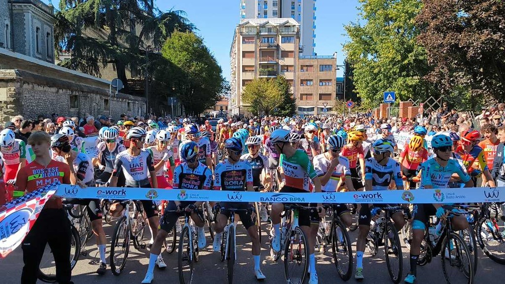 Tanti tifosi per la partenza della Tre Valli Varesine: in pista gli uomini, dopo l'avvio delle donne (LEGGI QUI) stamattina presto a Busto Arsizio.