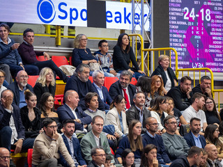 Le farfalle hanno sfoderato una prestazione coraggiosa, trascinate dal calore di una Arena gremita e rumorosa, per la prima volta tutta numerata e con i seggiolini biancorossi al primo anello, dove il tifo è stato un'onda costante. Emozionante anche il contorno della serata, con presenze d’eccezione in tribuna: al fianco di patron Giuseppe Pirola, il sindaco di Varese Davide Galimberti e l’assessore allo sport Stefano Malerba, immortalati a fine partita insieme ai politici bustocchi Luca Folegani e Manuela Maffioli (foto in apertura).